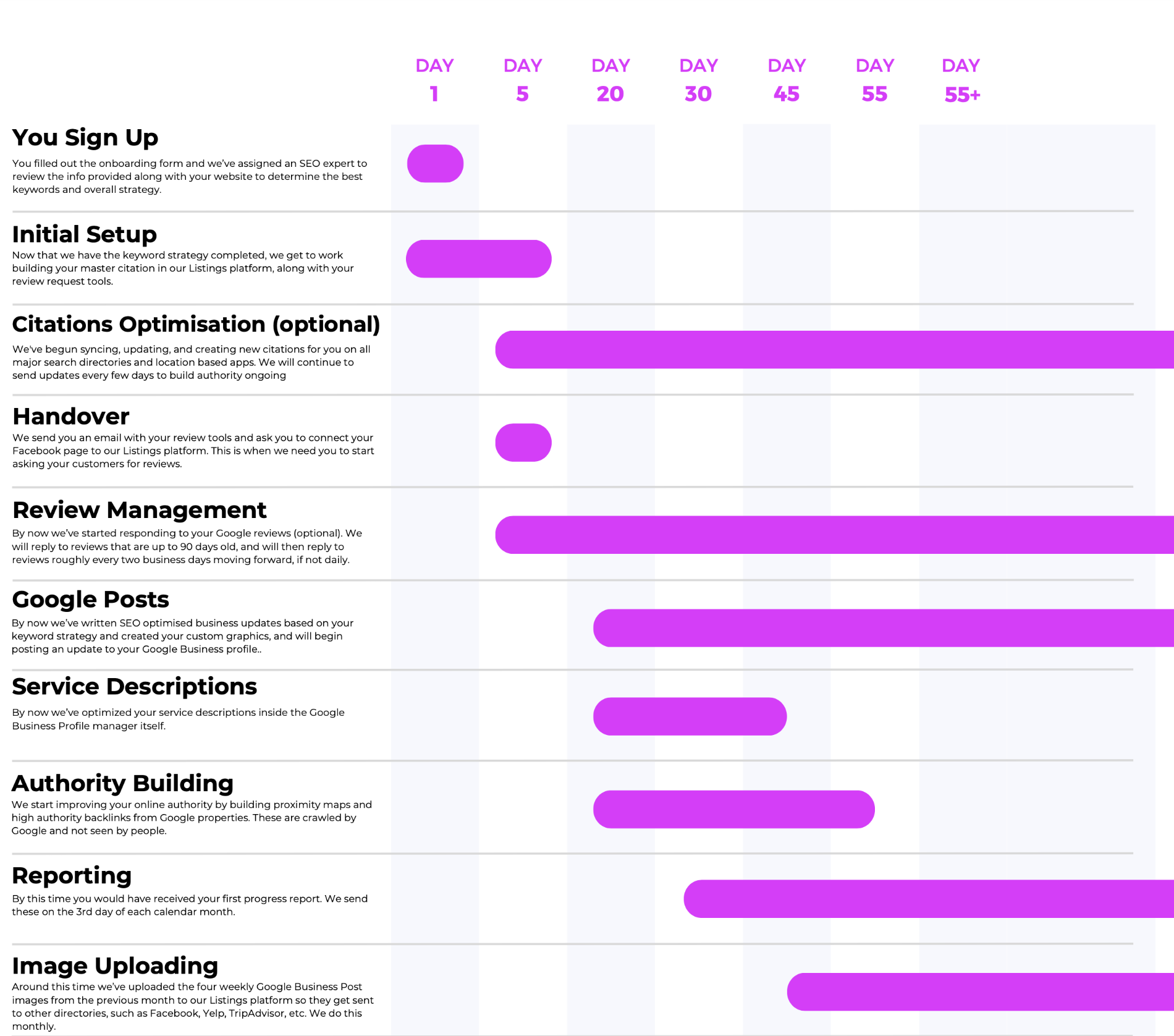 By day 55 and beyond, your profile isn’t just optimized — it’s driving more calls, clicks, and sales, all managed seamlessly by our expert team.